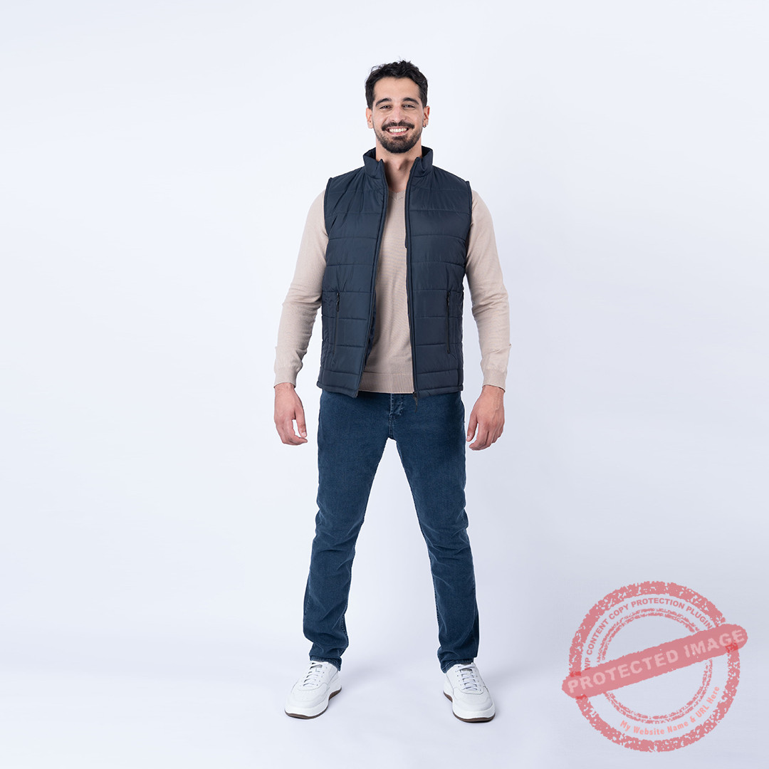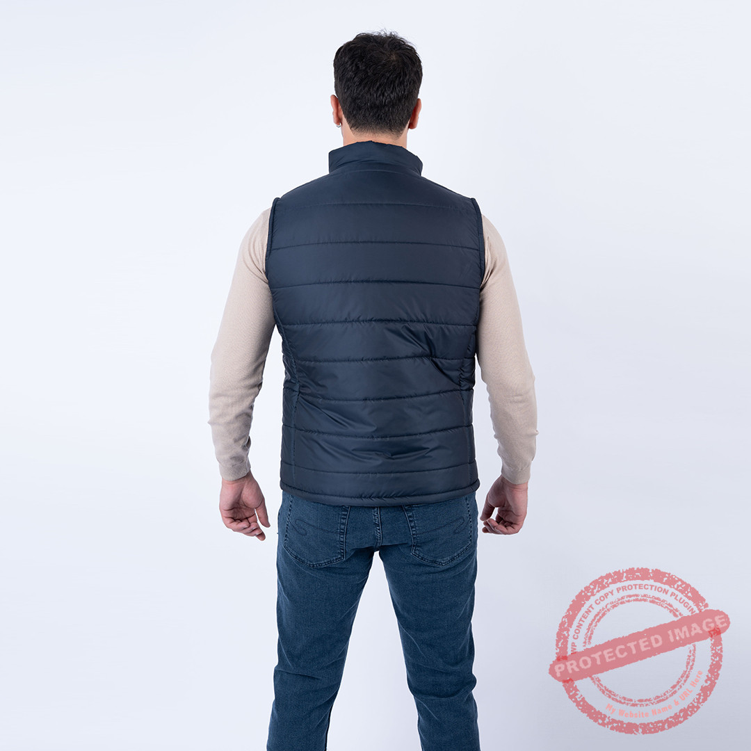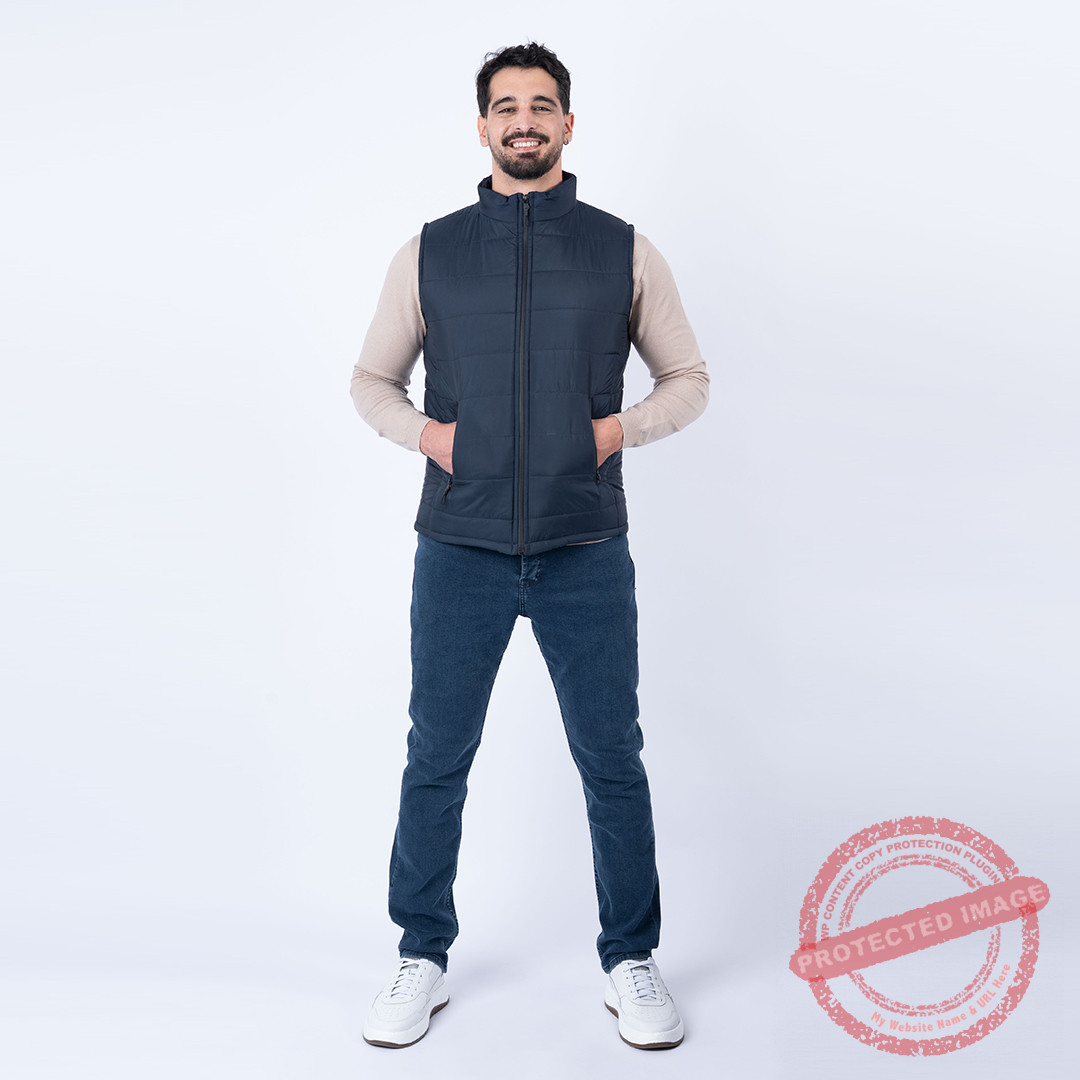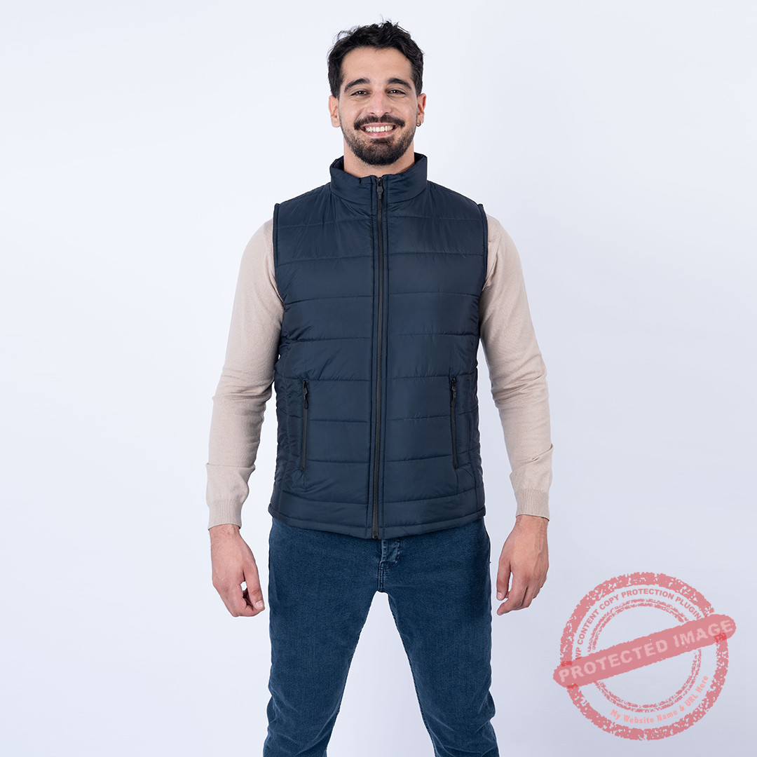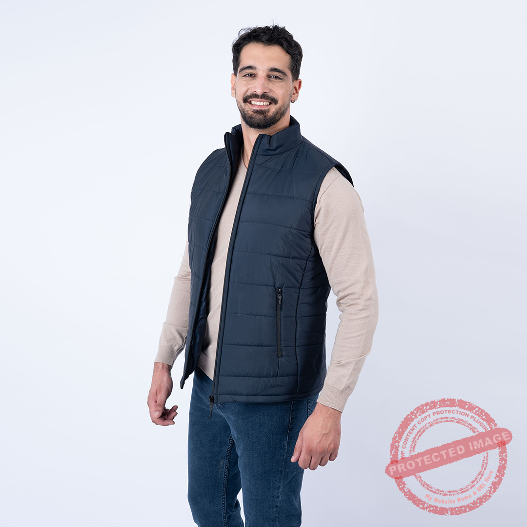 Doudoune sans manches marine, léger et isolant.