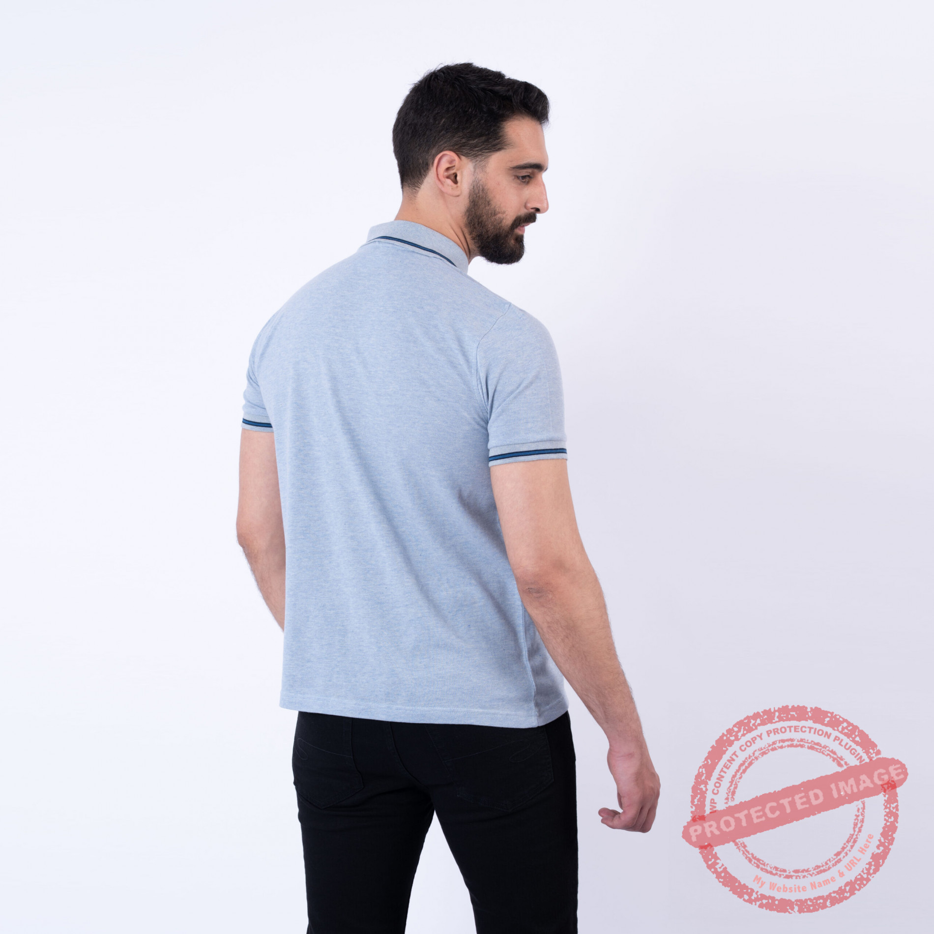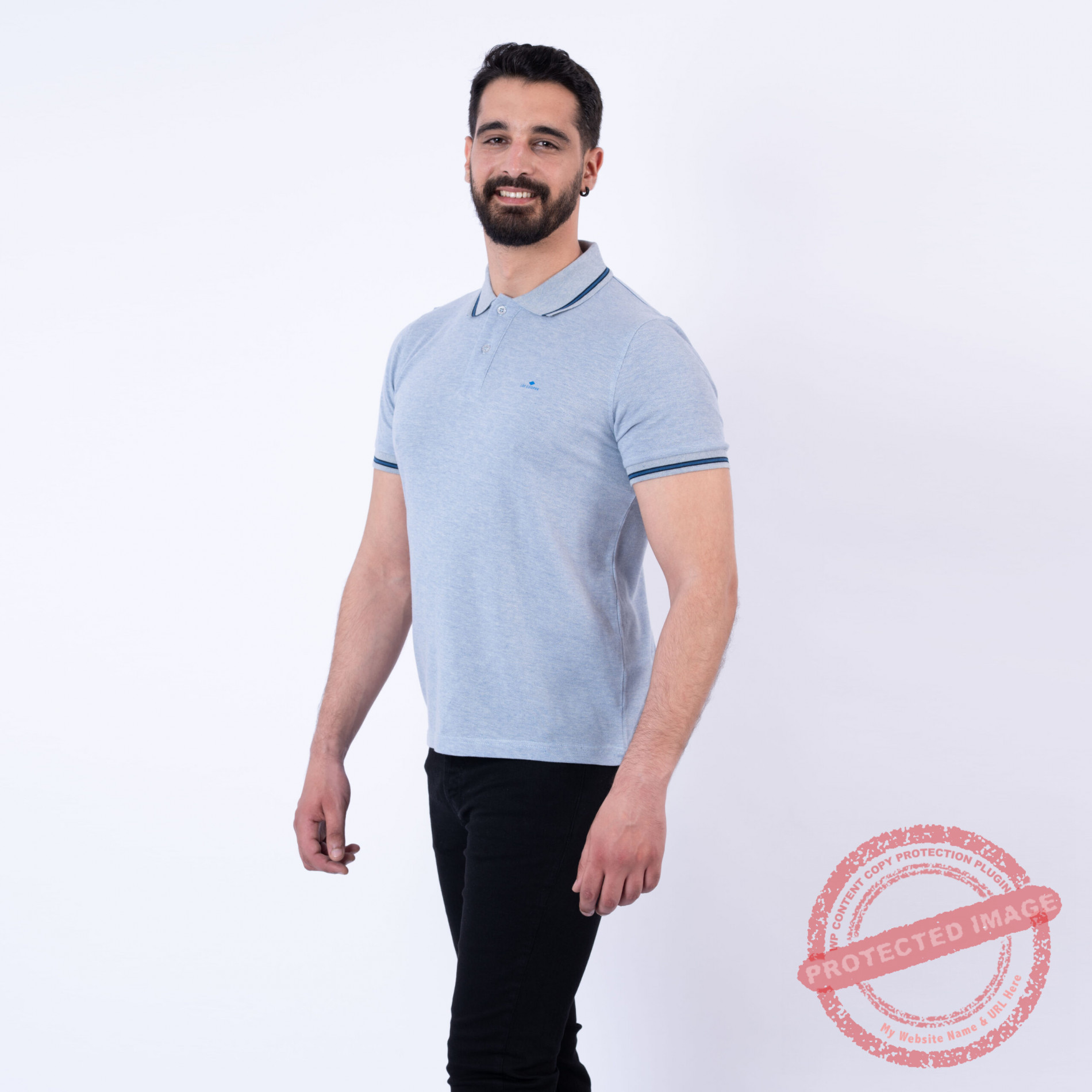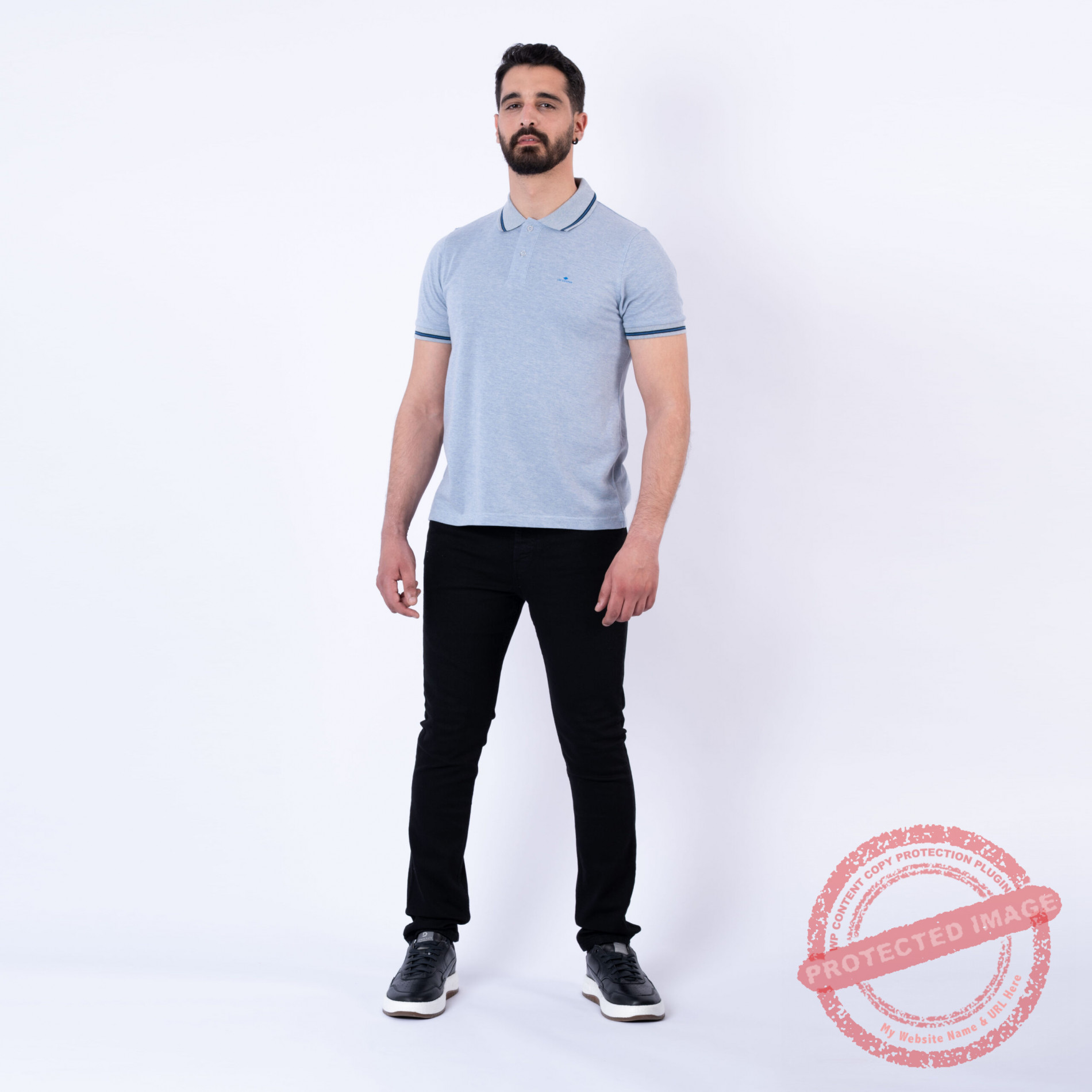 MAILLE-08 MENDY HOM  NAT.,POLO MANCHES COURTES , COULEUR CIEL
