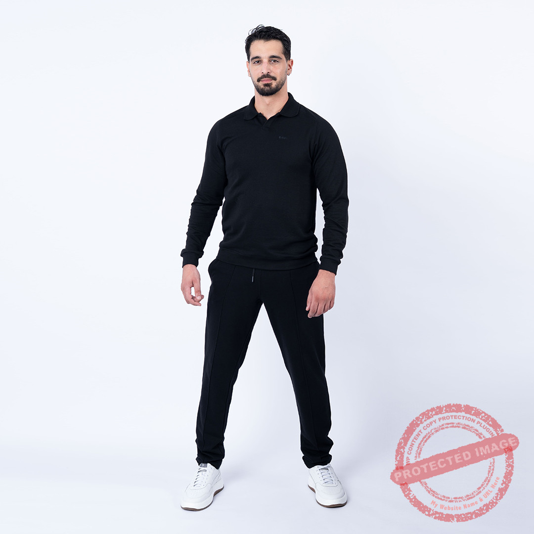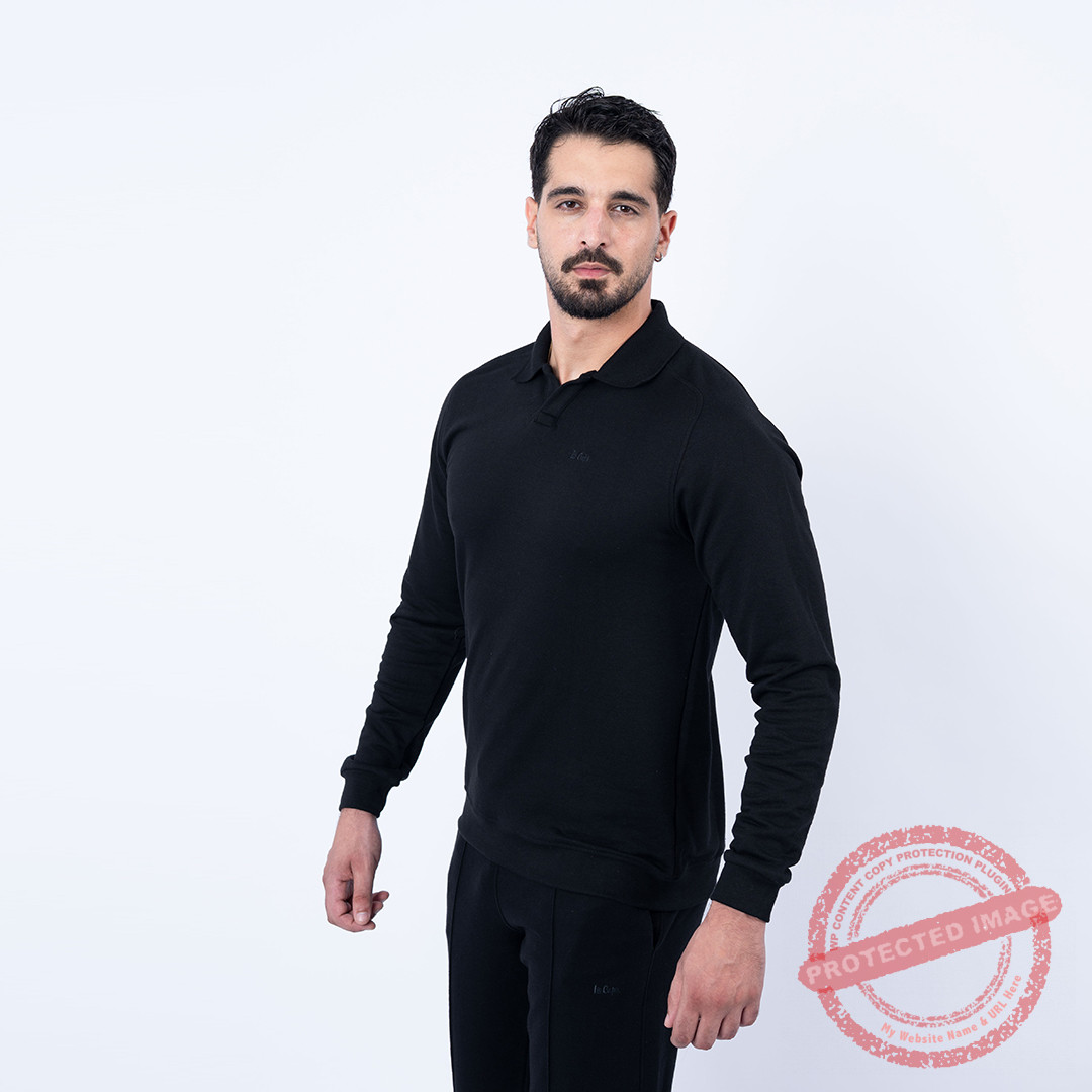 Lee Cooper Polo Noir MAILLE-11 BROLIN Homme, polo manches longues.  Couleur : noir.