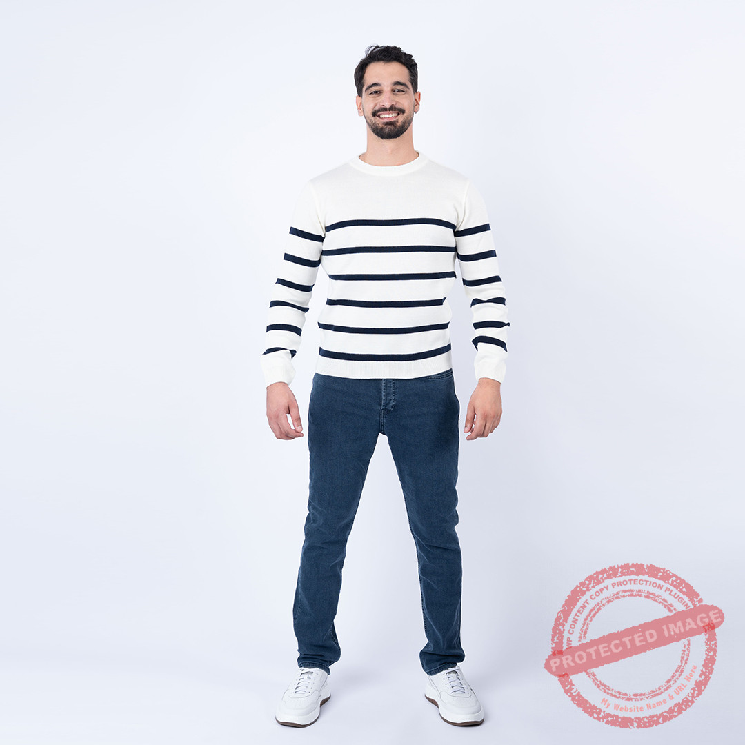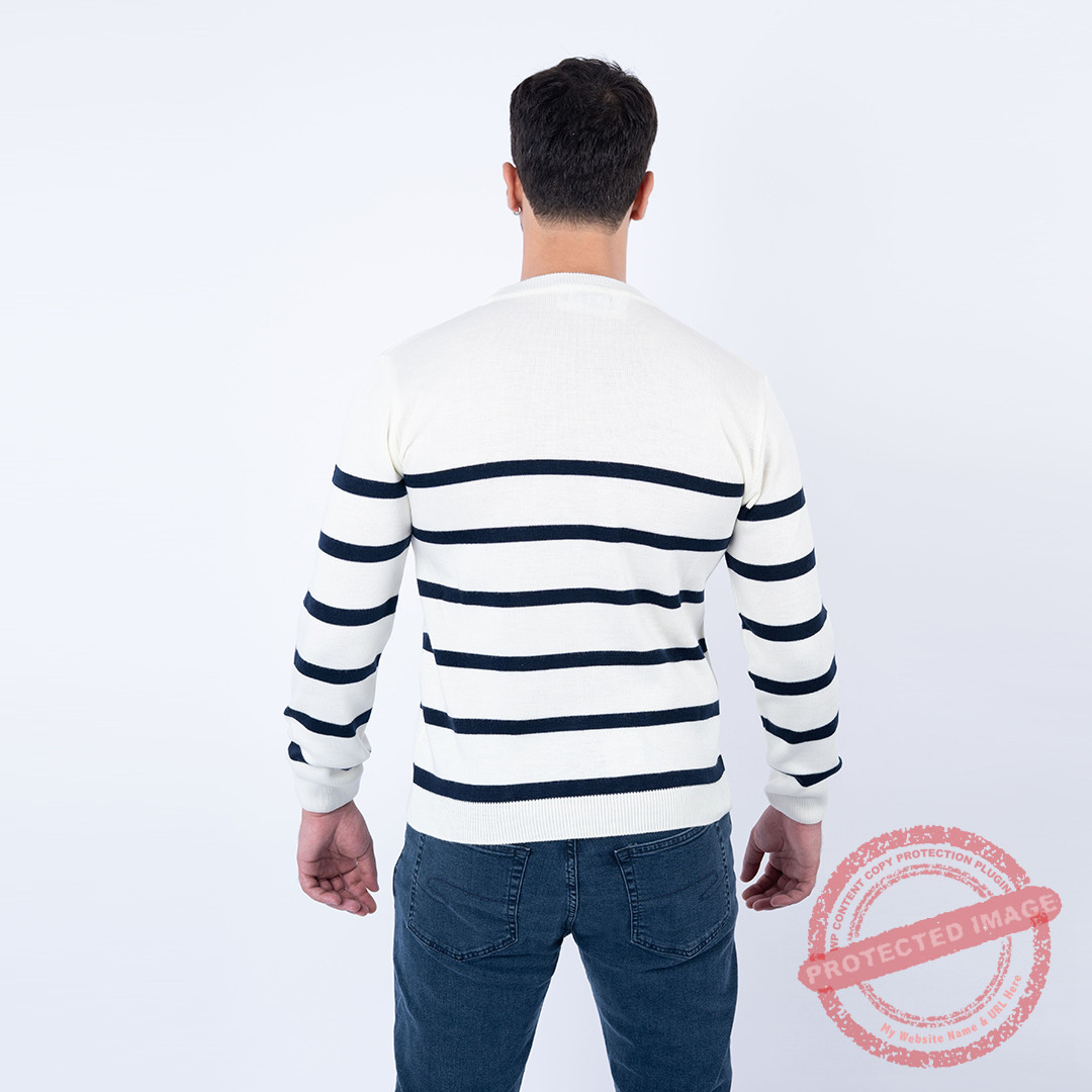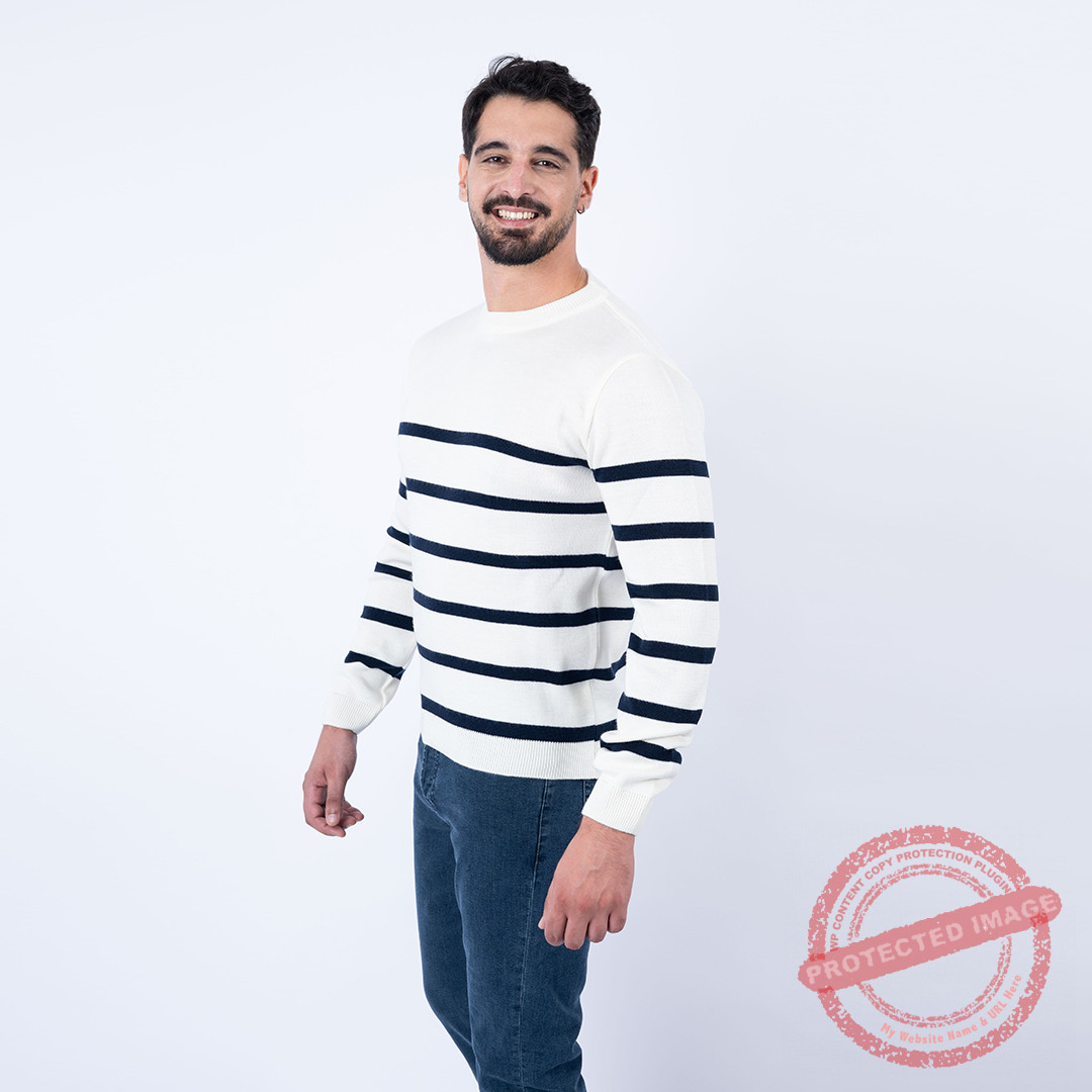 Lee Cooper Pull MAILLE-01 LCH2512 Homme, pull rayé marine. Couleur : blanc.