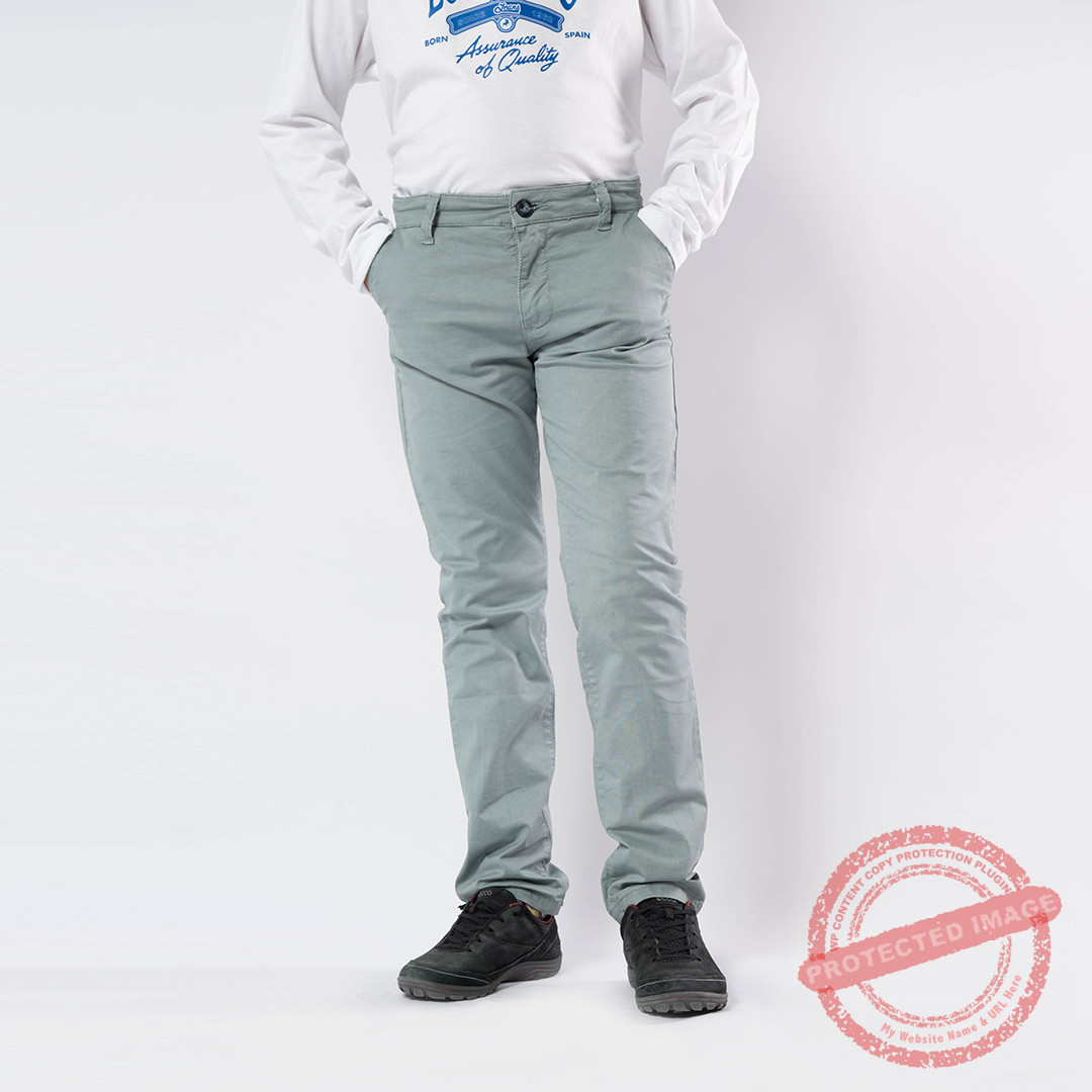PANTALON CHINO UNI , COULEUR GRIS VERT
