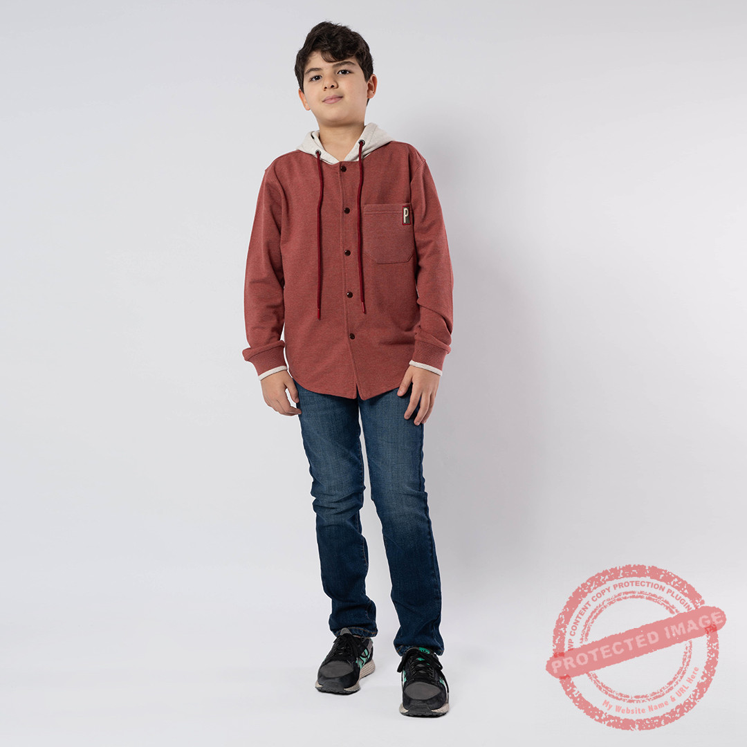 SURCHEMISE  MANCHES LONGUES , COULEUR ROUGE BRIQUE
